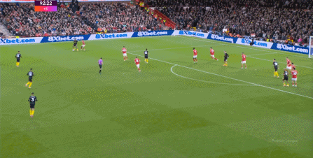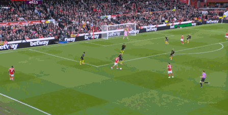 但从战术上来说,诺丁汉森林显然是准备得更充分的一方,因为姆贝乌莫和阿玛德-迪亚洛这一侧的进攻效率并不如此前三场那么亮眼,但诺丁汉森林通过中圈区域的争斗,所形成的进攻和射门相当频繁: